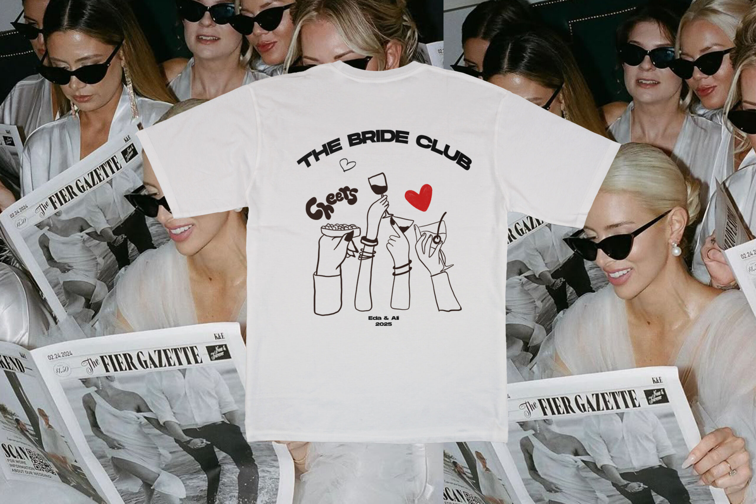 Bu özel tasarım tişört, gelin ve yakın arkadaşları için yalnızca bir kıyafet değil, aynı zamanda o geceyi sonsuza dek hatırlatacak bir hatıra.