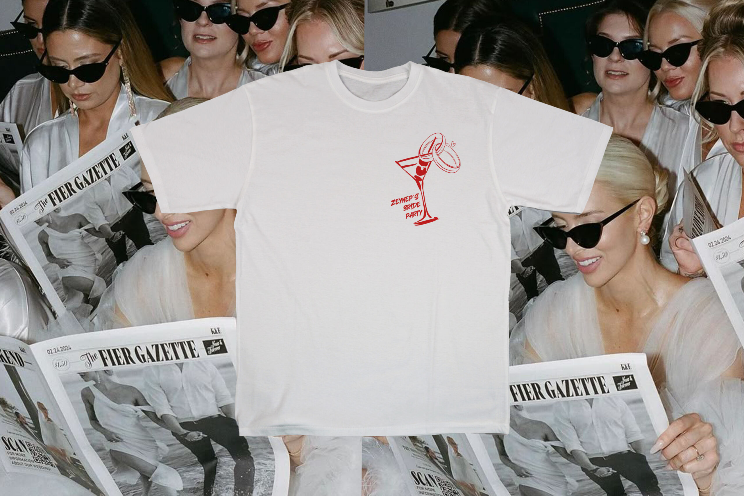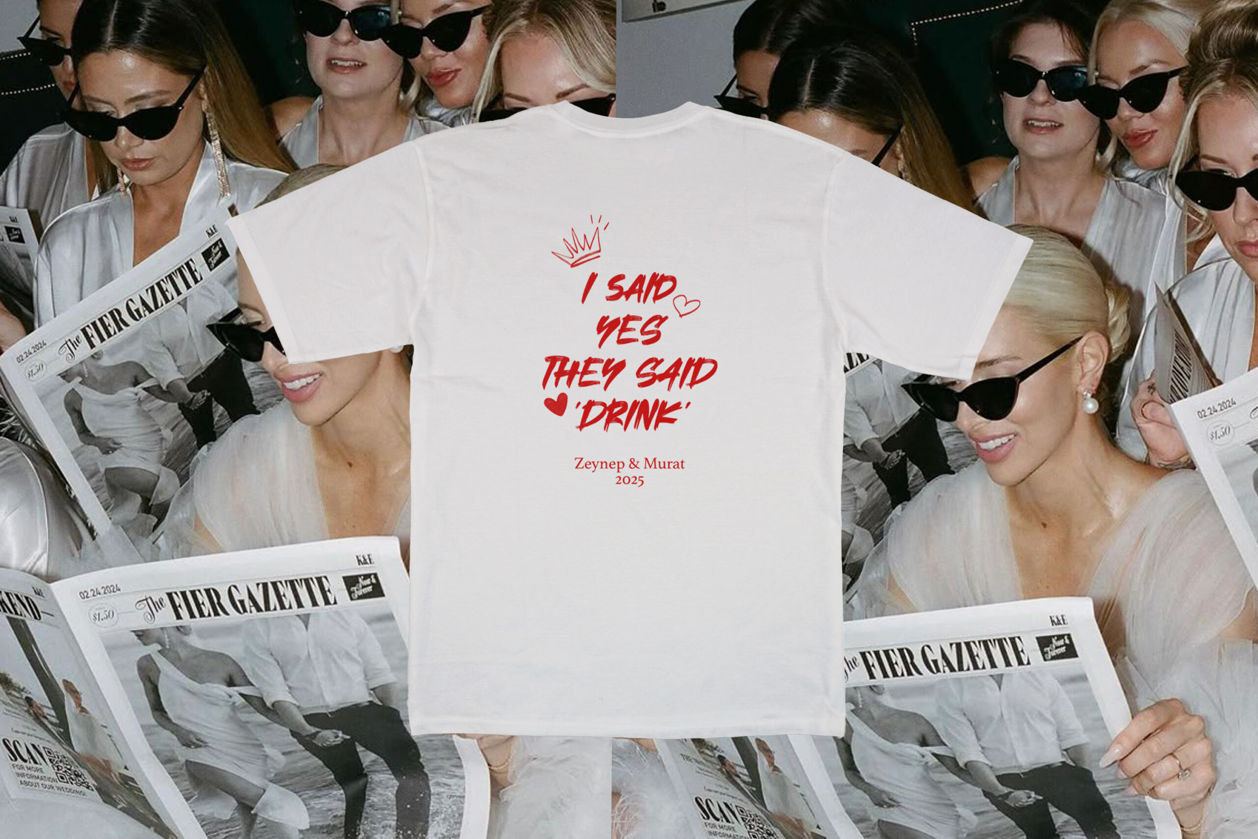 Bu özel tasarım tişört, gelin ve yakın arkadaşları için yalnızca bir kıyafet değil, aynı zamanda o geceyi sonsuza dek hatırlatacak bir hatıra.