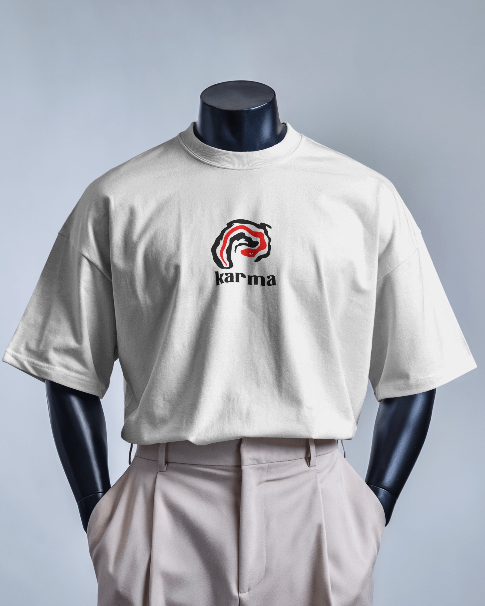Bu tişört, günlük kombinlerinize rahatlık ve eğlence katmak için tasarlandı. Minimal ama etkileyici “karma” baskısıyla tarzını yansıtmak isteyenler için birebir