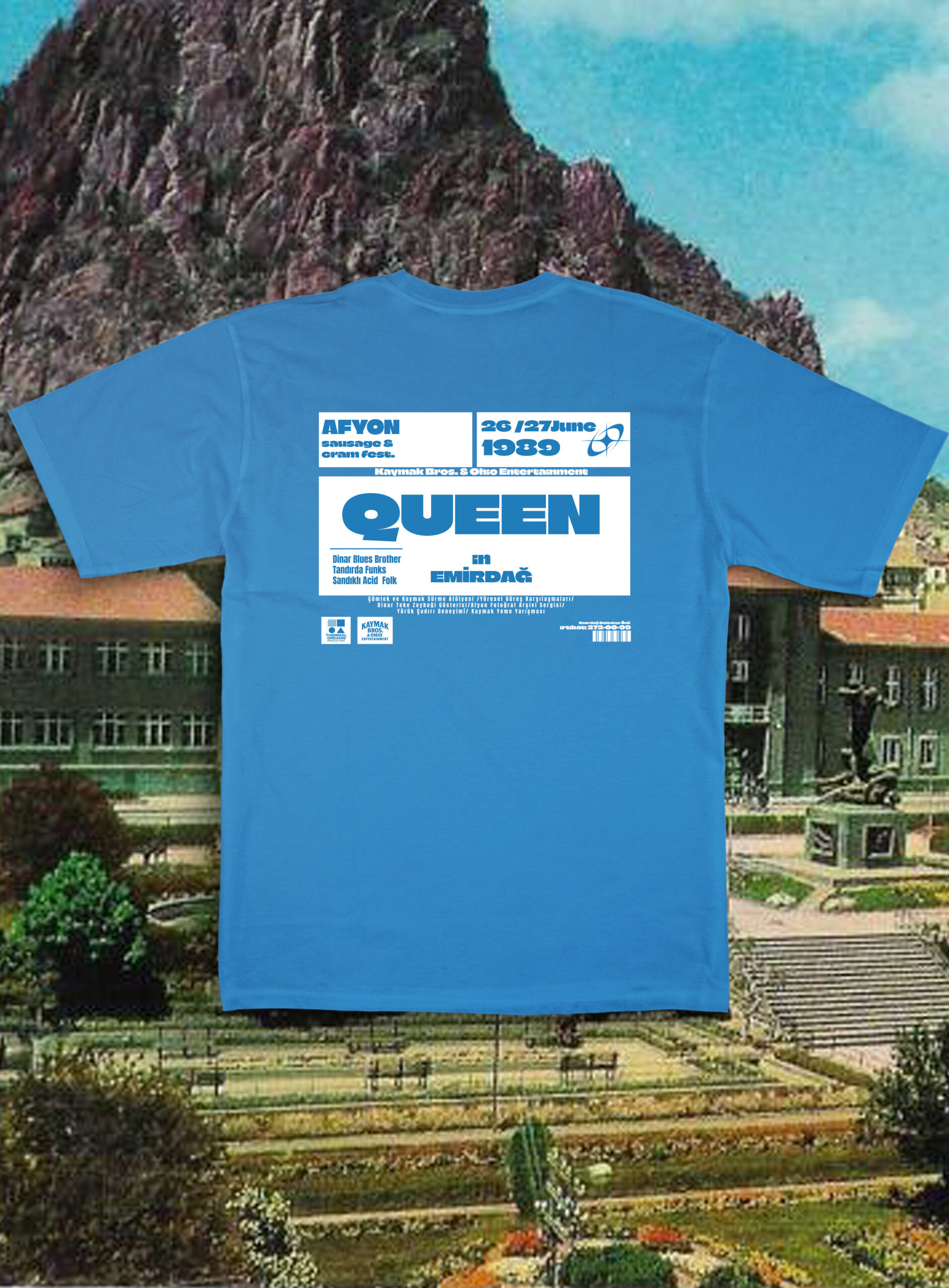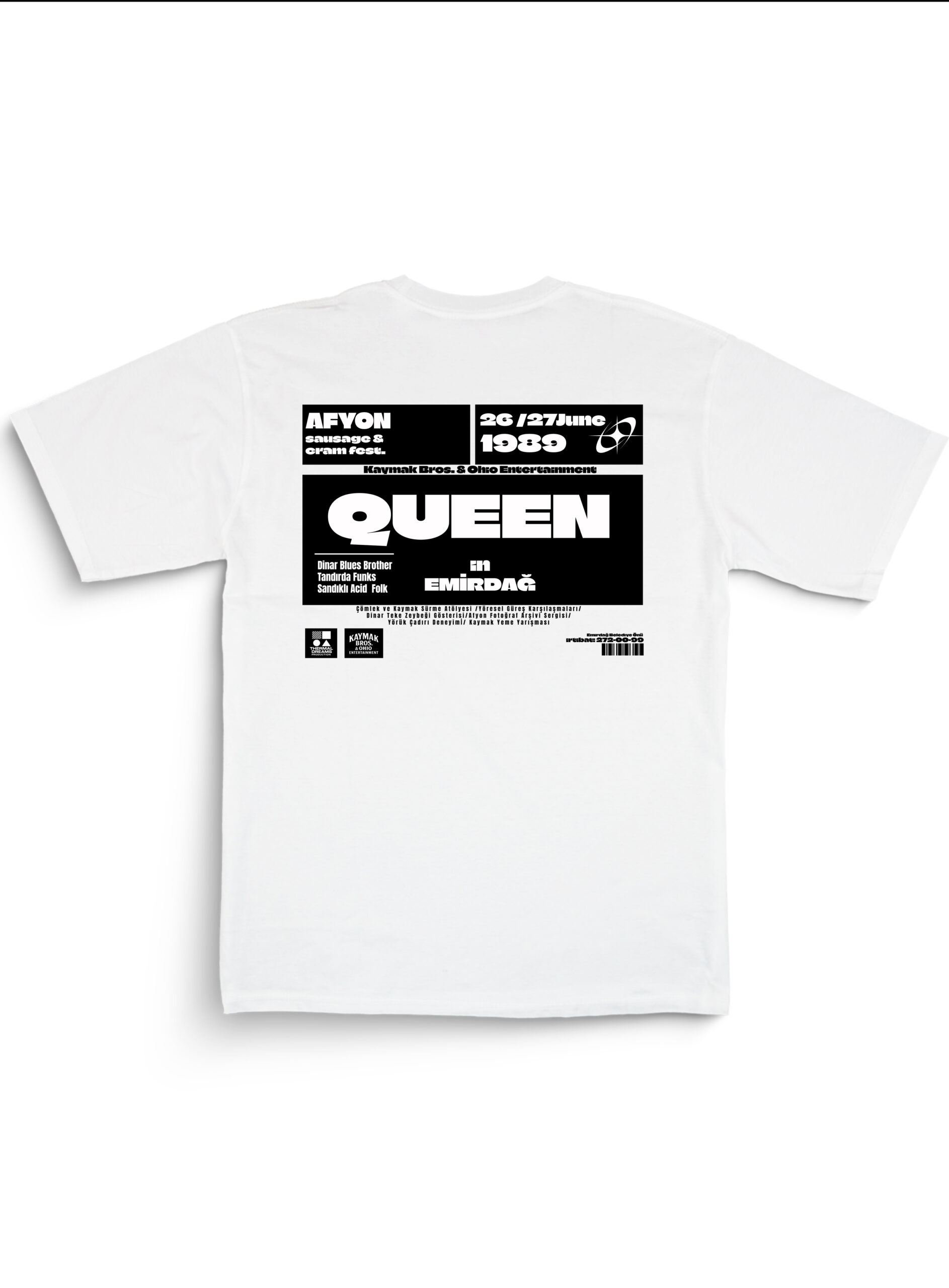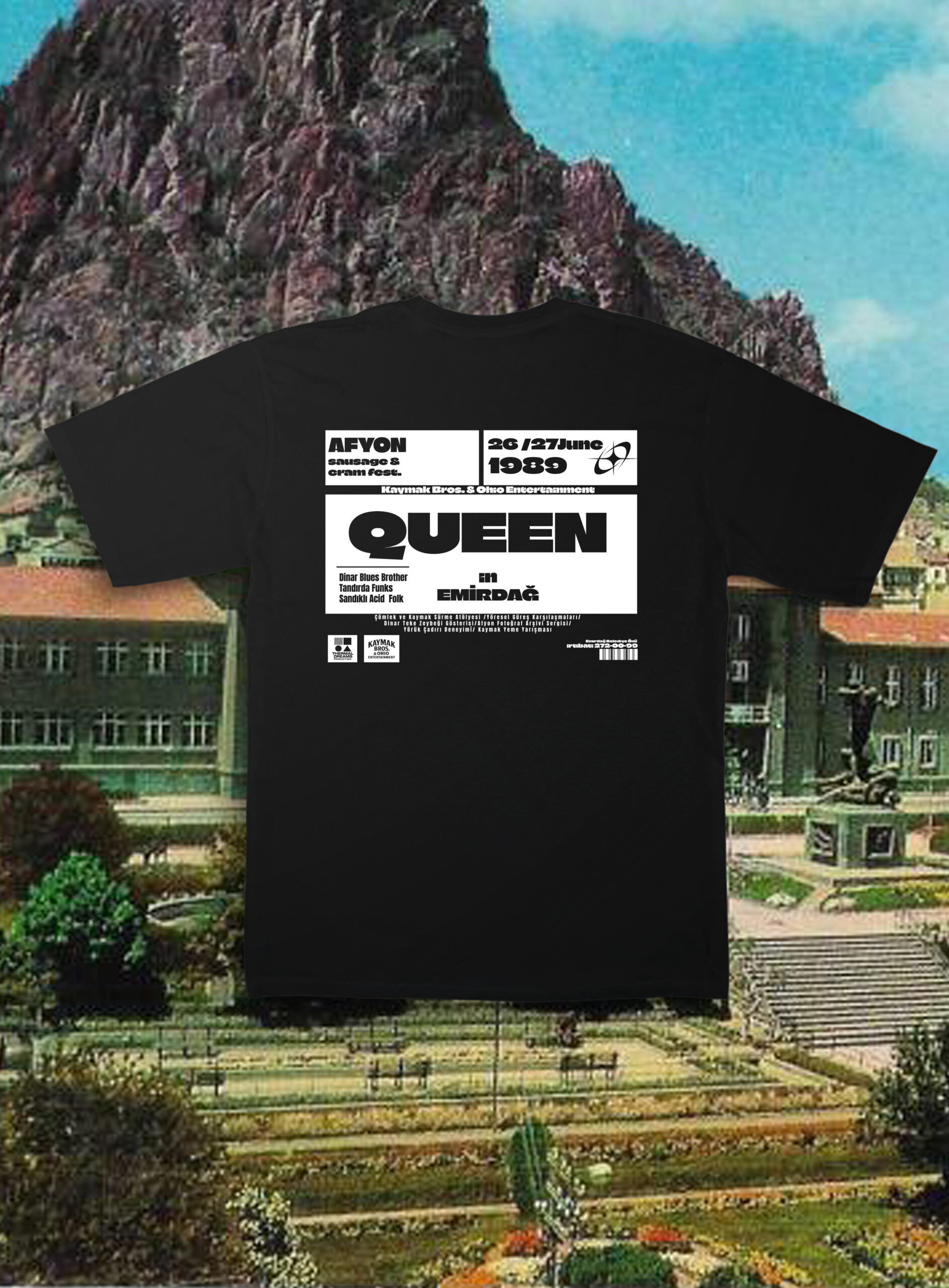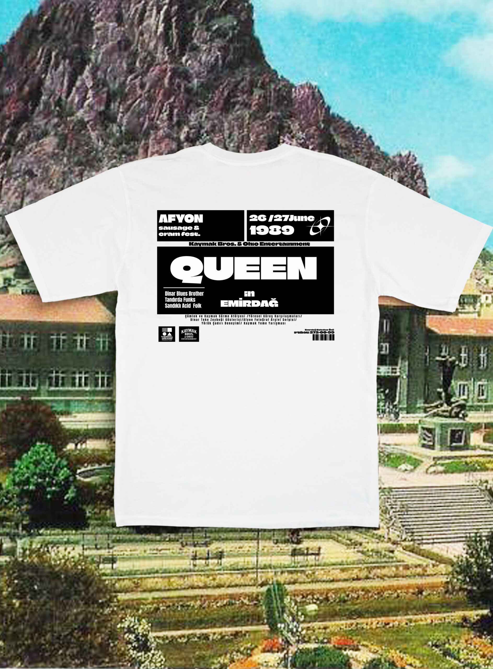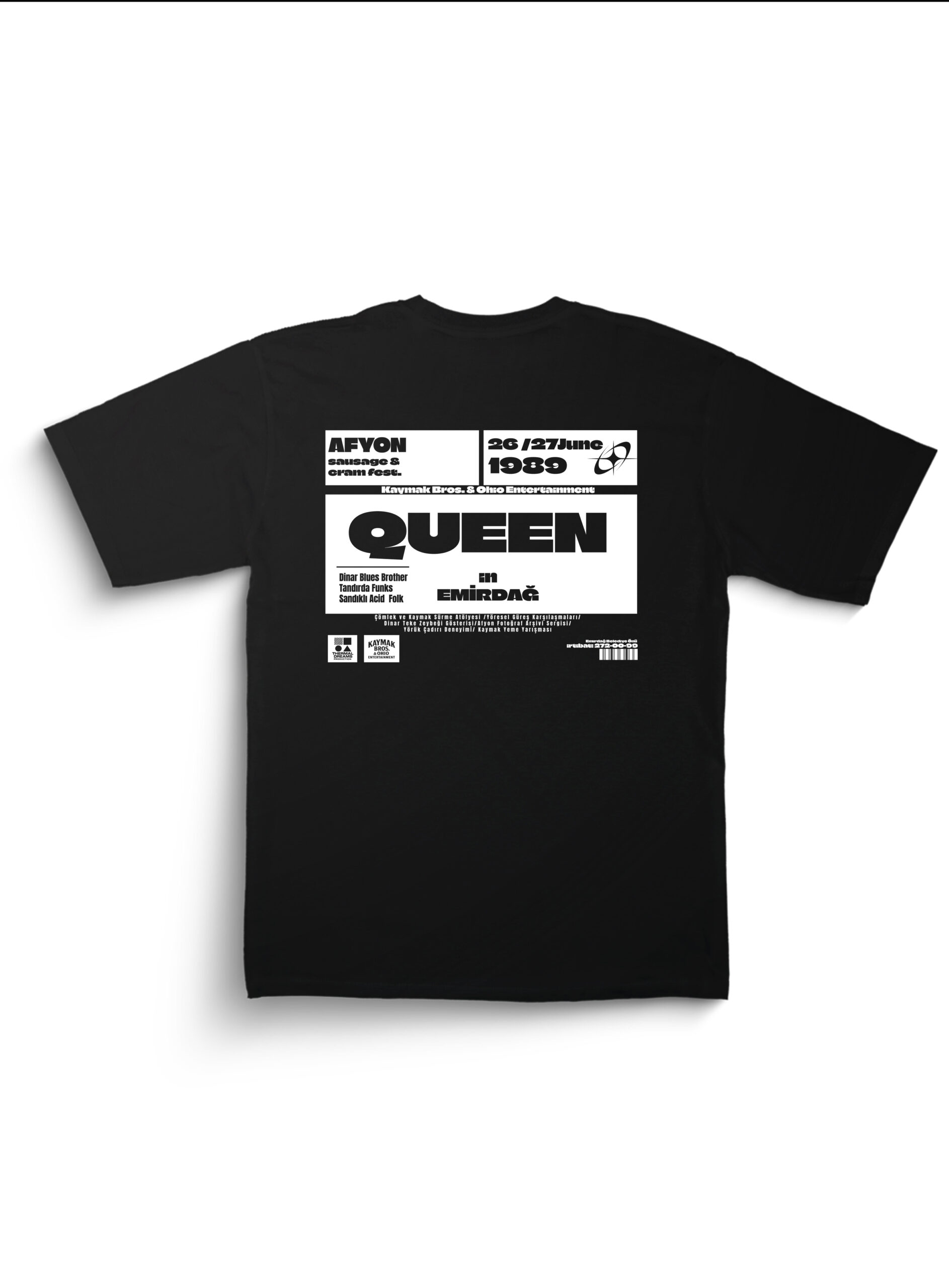 Bu tişörtte, hayali bir festivalin afiş tasarımını giyiyorsun. Afyon’un yöresel tatları, retro 90’lar estetiği ve rock tarihinin efsanevi grubu Queen bir araya geldi. Ortaya hem koleksiyonluk hem de günlük kullanım için mükemmel bir parça çıktı.